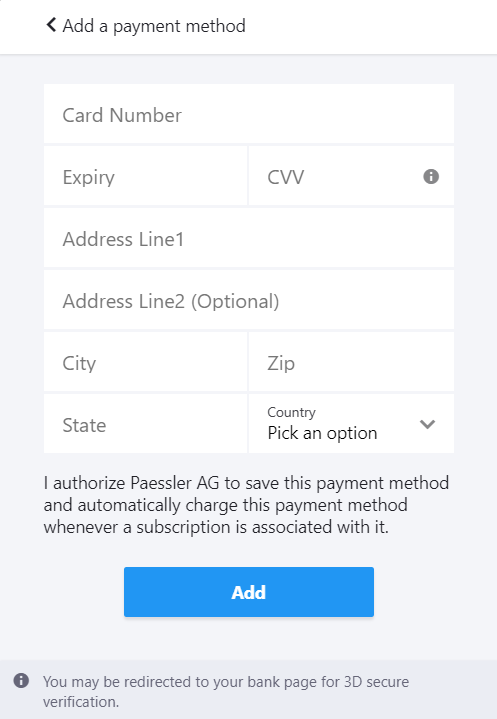 When you purchase a PRTG Hosted Monitor subscription, you need your payment information.