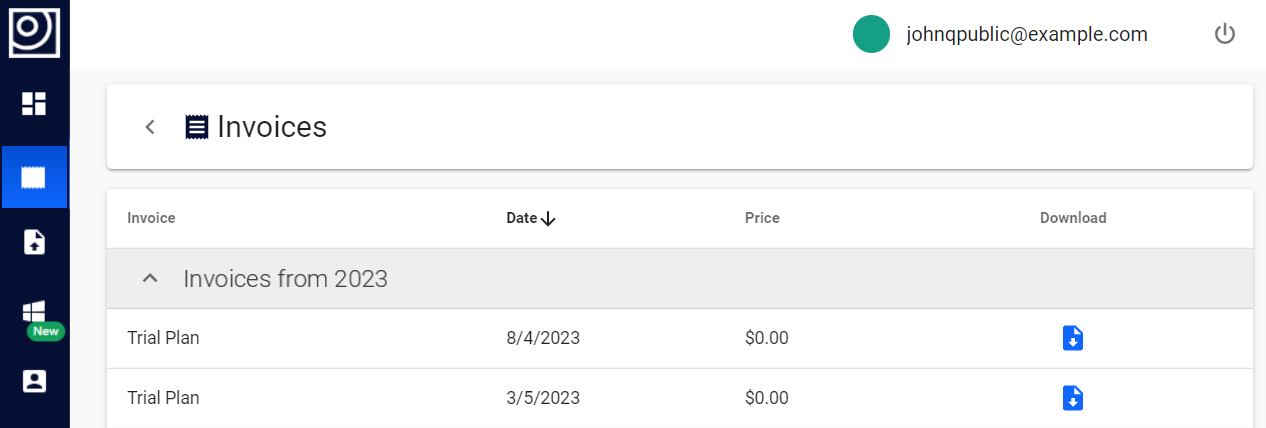 Here you can view and download all of your invoices.