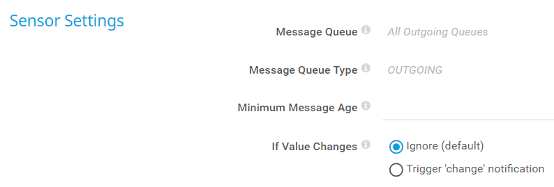 Optionally define an age in minutes that the message must be for the sensor to count it. If you set a minimum message age, the sensor does not regard messages that are younger than this age. If you leave this field empty, the sensor does not check for the message age. Enter an integer or leave the field empty.
